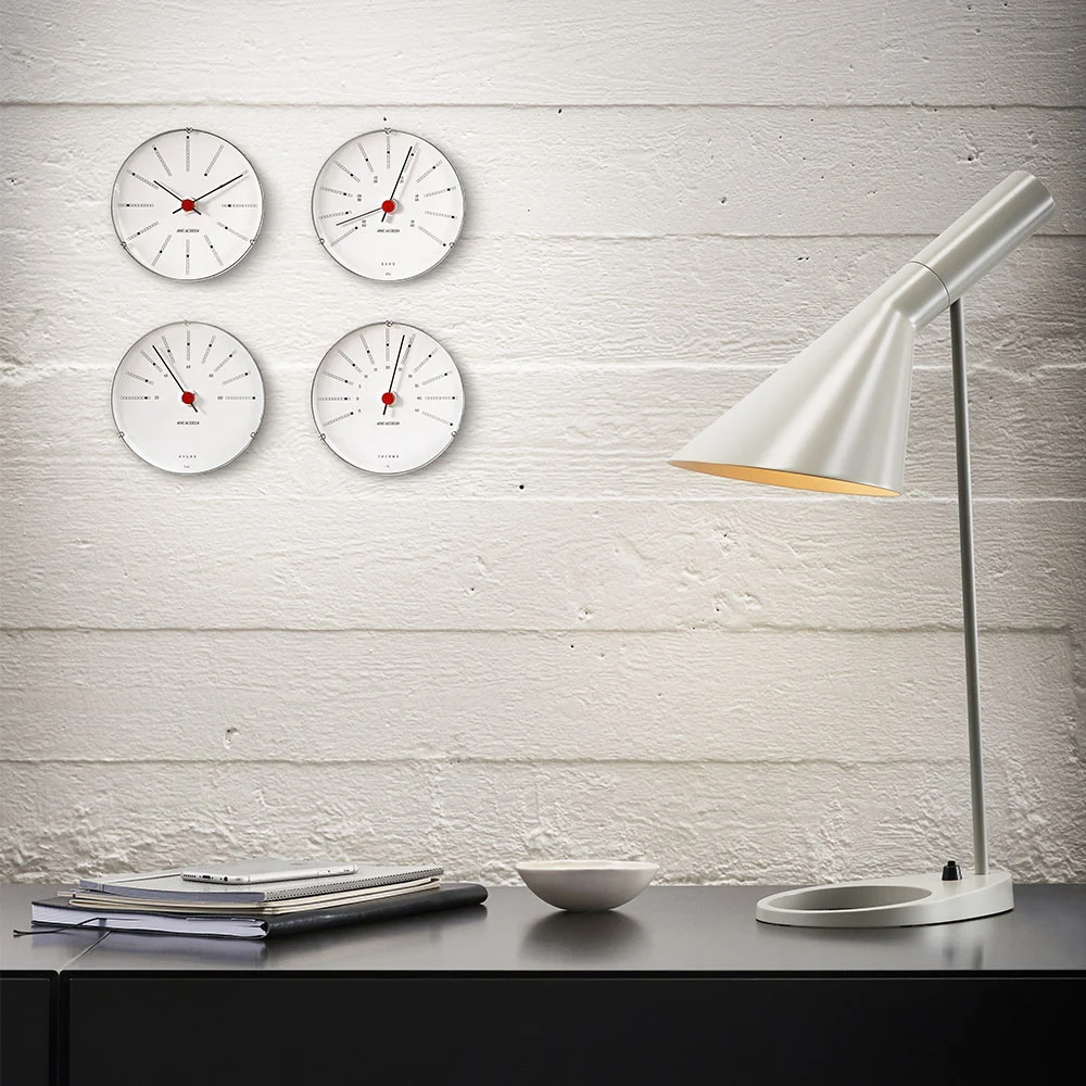 Bankers barometer from Arne Jacobsen. The barometer measures air pressure and has a design inspired by Bankers wall clock, designed in 1971 for Denmark’s National Bank. Use with hygrometer and thermometer and become an expert in all weather conditions.