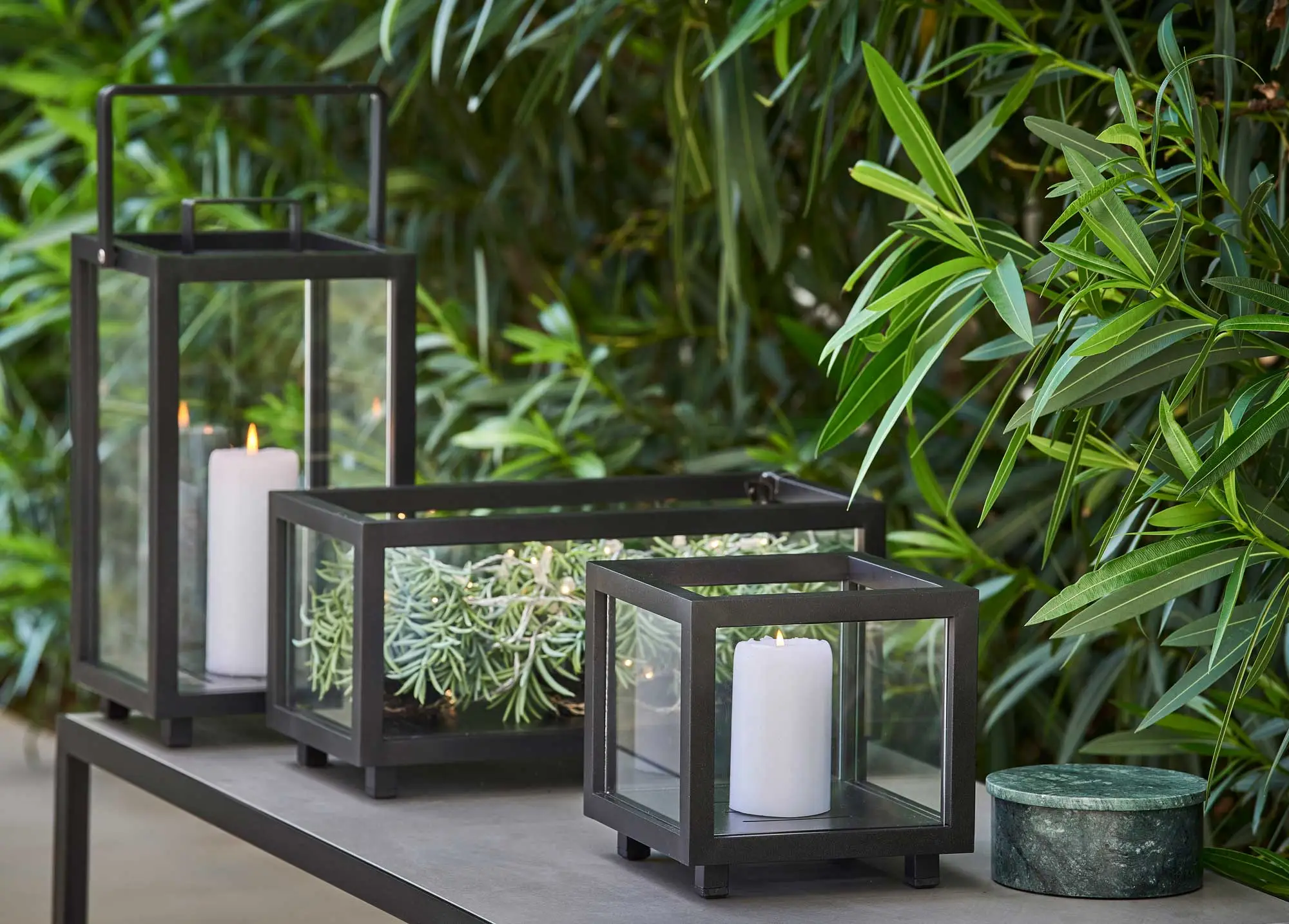 Lighthouse, a Cane-Line lantern, available in three sizes. Stylish durable materials such as glass and powder coated aluminum and stylish designs are significant for Cane-Line.