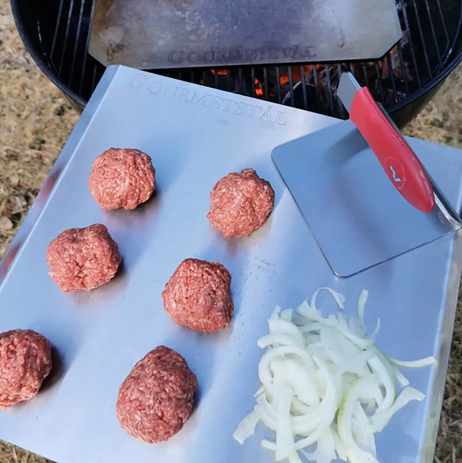 – Combine the steel griddle with a smasher from Gourmetstål.