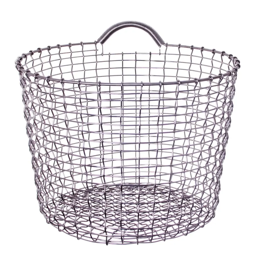 The classic wire basket in steel from 1920 is as modern and convenient then as now. Acid-resistant stainless steel containing nickel and molybdenum, which along with the steel to form an alloy that is completely stainless steel. Unlike galvanized wire, it is stainless all the way through and can therefore be used outdoors all year round and can withstand chemical stresses.