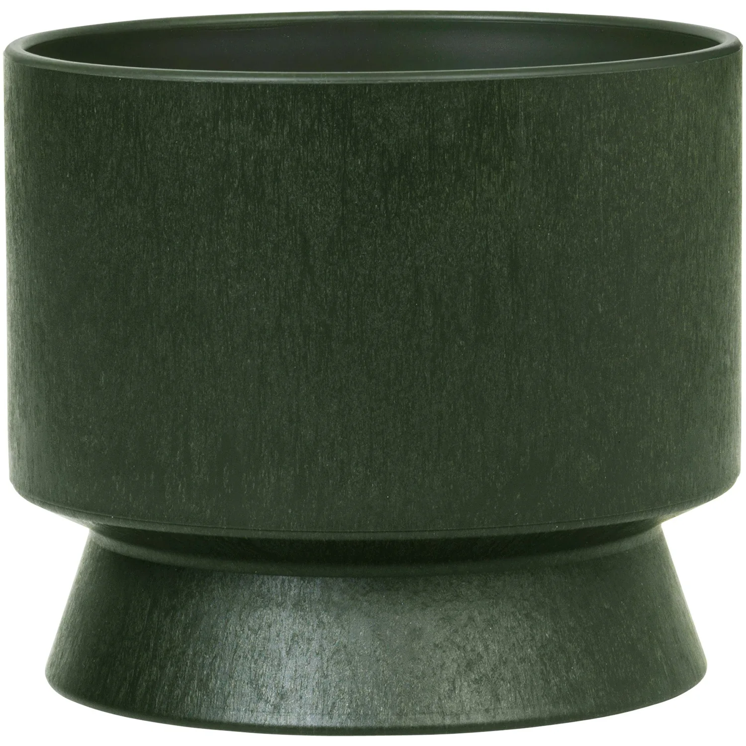 The pot by Rosendahl has a sustainable design in recycled, frostproof plastic perfect for both indoor and outdoor use. It has a rustic appearance with an uneven surface and a nature inspired, dark green colour. It has a light weight to easily move around at home.